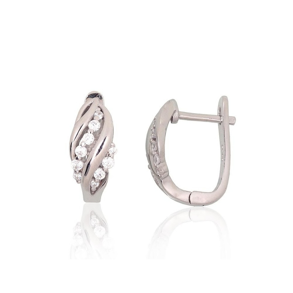 Sudraba auskari ar 'angļu' slēdzēju, Sudrabs 925°, rodijs (pārklājums), Cirkoni, 3.6 gr.