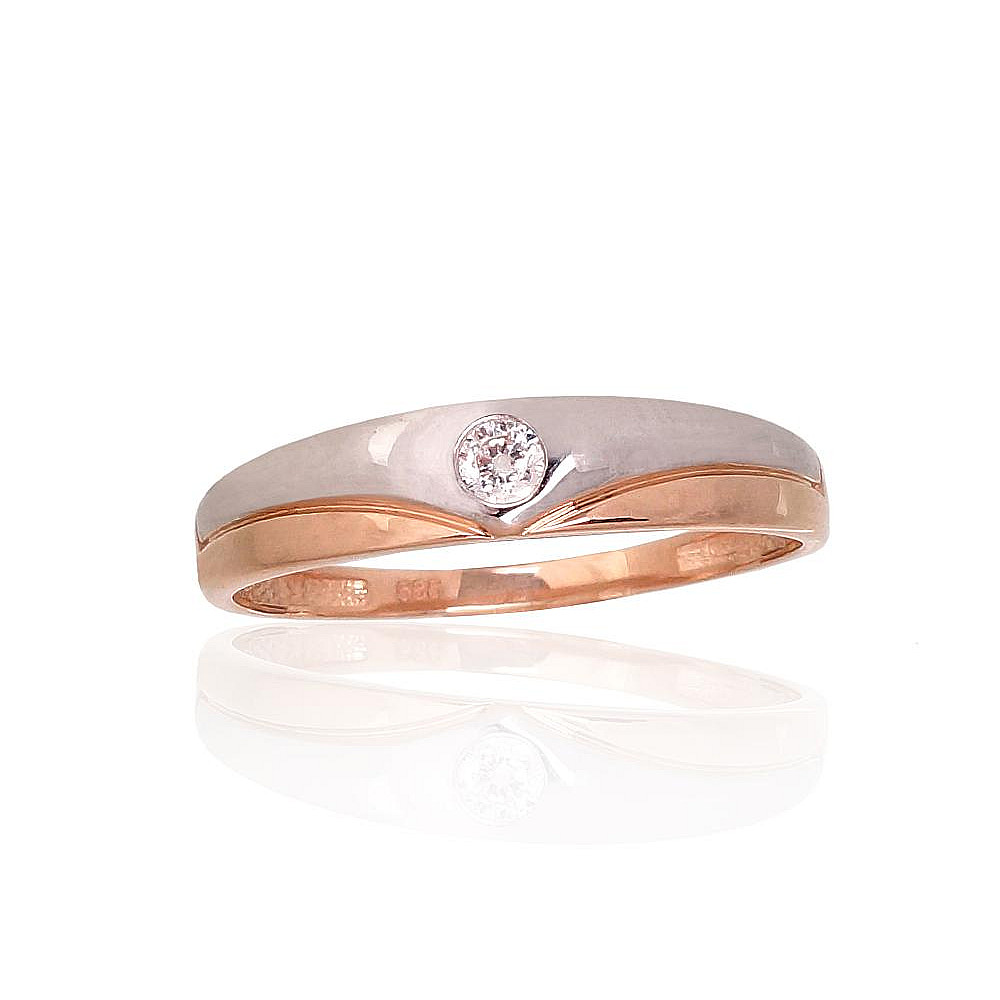 Zelta gredzens, Sarkanais Zelts 585°, rodijs (pārklājums), Cirkoni, Izmērs: 18, 1.29 gr.