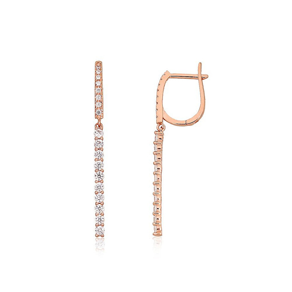 Золотые серьги на английском замке, Красное Золото 585°, Цирконы, 2.17 гр.