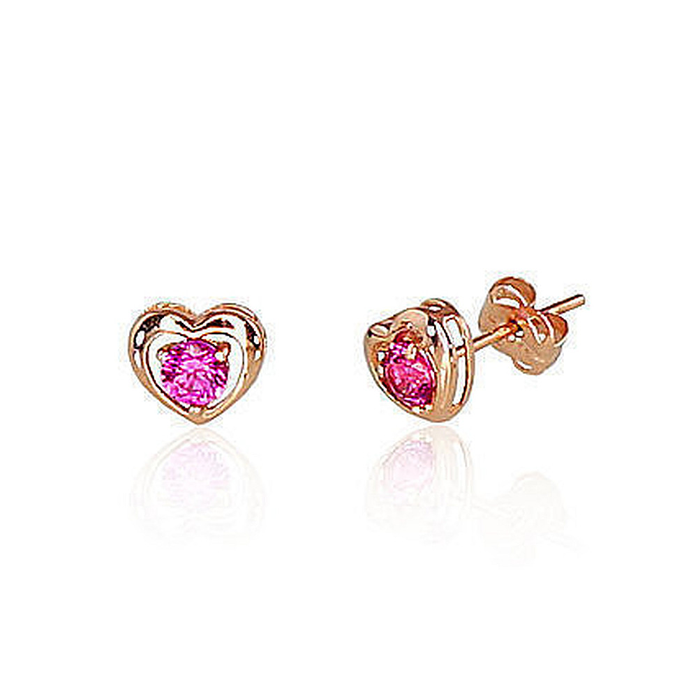 Золотые серьги-пуссеты, 0.56 g, Красное Золото 585 проба, Цирконы
